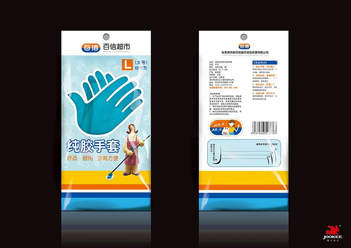 张家港百信超市橡胶手套包装效果(蓝色装)
